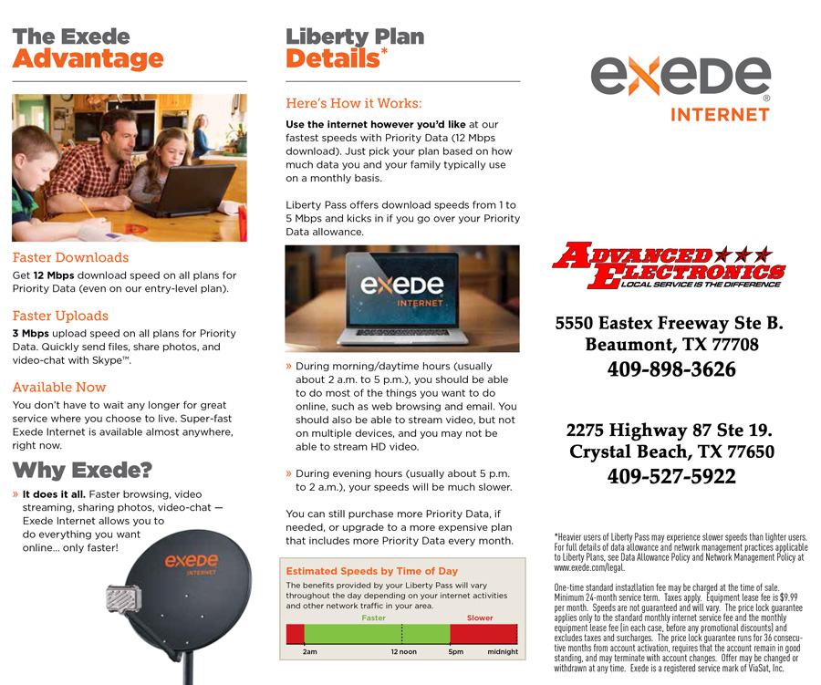 Advanced Electronics brings you high-speed internet and VOIP from Exede.